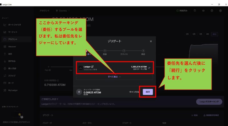 委任するプール(バリデーター)を選択する